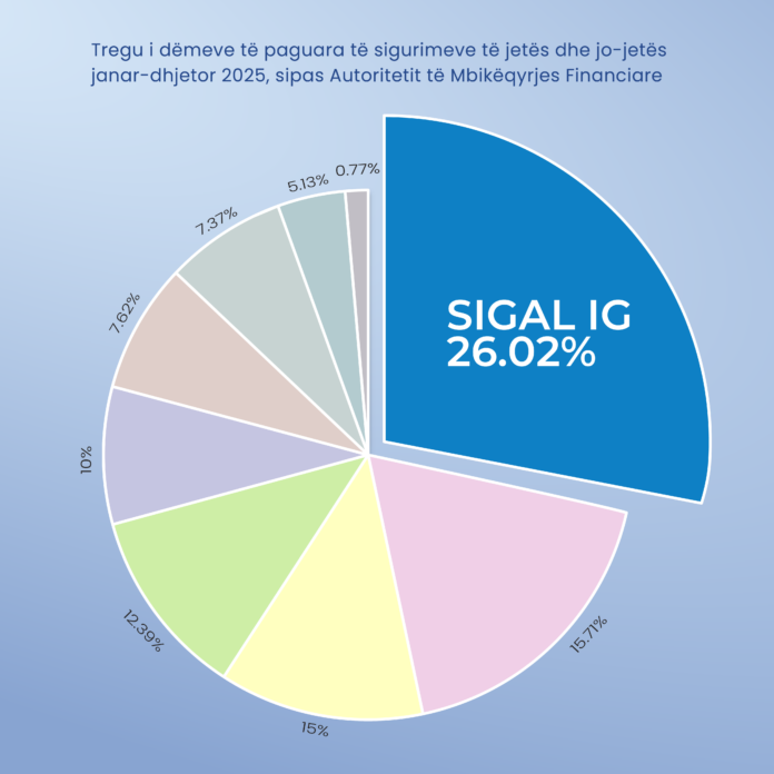 Sipas raportit vjetor 2025 të AMF, për periudhën janar–dhjetor 2025, i publikuar sot, SIGAL IG në tregjet jetë dhe jojetë të marra së bashku paguan 26.02% të dëmeve, me 20,444 përfitues konkretë përgjatë vitit.