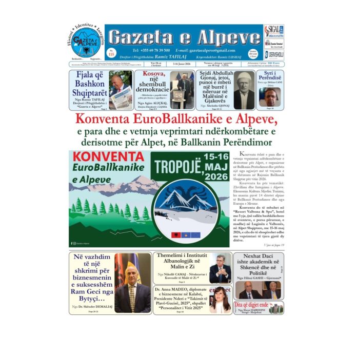AktualitetDiasporaHistoriKosovaKulturëLibraMali i ZiMaqedoniaPersonazhPoeziPortretRajoniRavijëzimeShqipëri Faqja e parë e “Gazeta e Alpeve” Nr. 115, dt. 5 – 16 janar 2026 February 28, 2026 Share Facebook Twitter Google+ Pinterest WhatsApp